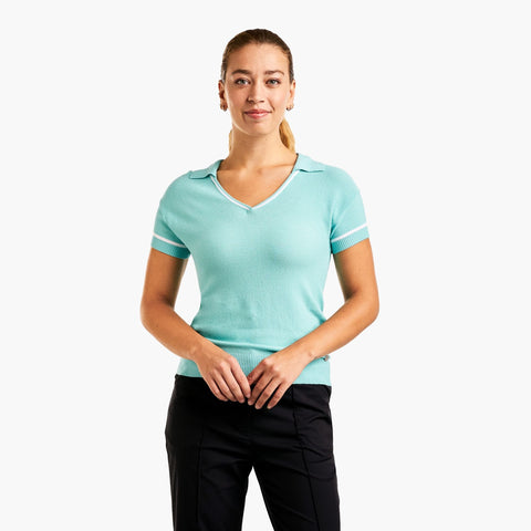 Entrez sur le terrain de golf avec confiance et style grâce à notre polo léger Nyla. Ce n'est pas un polo ordinaire, mais une fusion entre un design avant-gardiste et une fonctionnalité adaptée aux femmes actives qui recherchent à la fois performance et élégance. Ce haut léger offre un toucher extrêmement doux et une élasticité parfaite. Le polo en tricot Nyla de NVO est doté d'une protection solaire intégrée qui vous protège des rayons UV nocifs (FPU 50), vous permettant ainsi de vous concentrer sur votre jeu. Prenez votre élan en toute confiance, jouez avec panache et profitez de votre jeu grâce au confort inégalé de notre superbe polo en tricot léger.