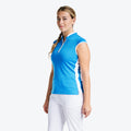 Perfect for those warm days on the golf course, the sleeveless Brianna mock offers a quarter-zip closure for an easy fit, keeps you fresh, and protects you from the harmful sun's rays with its sun protection UPF 40+ properties and quick-dry fabric. This sleeveless polo is made of jacquard fabric which gives a luxurious design and makes this mock golf ideal for winter and summer. The semi-fitted cut, contrasting side trims, and mock collar bring a sporty and dynamic look.