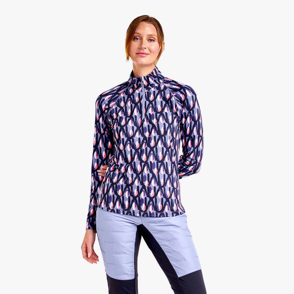 This long-sleeved top from NVO combines comfort and performance for your golf rounds. Made with sublimated peached knit, it offers a semi-fitted cut and great freedom of movement. The mock neck, raglan sleeves, and side slits add a modern touch, while its UV protection, quick-dry, and moisture-wicking properties ensure optimal comfort throughout your game.