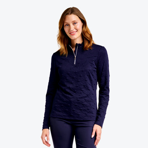 This long sleeve top combines style and performance for your golf rounds. Made with 3D knit, it offers a semi-fitted cut and great freedom of movement. The mock neck, YKK zipper, and side slits add a modern touch, while its UV protection UPF 40+, quick-dry, and moisture-wicking properties ensure optimal comfort on the course.