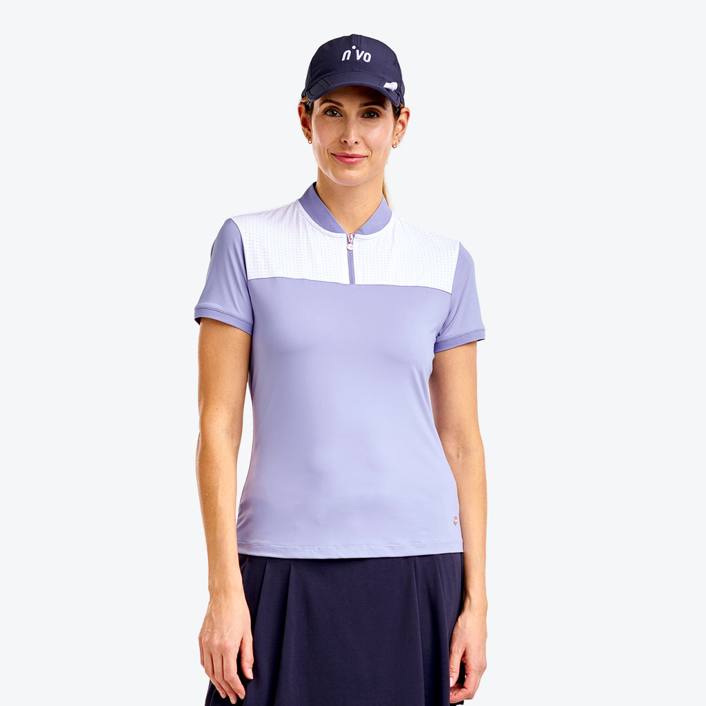 This short-sleeved golf top combines comfort and performance on the course. Its semi-fitted cut and laser-cut fabric on the front and back offer both elegance and breathability. The ribbed collar and cuffs, paired with a practical YKK zipper, add a modern touch. With UPF 40+ sun protection, quick-dry properties, and cooling effects, this top keeps you cool and dry even on the hottest days. The perfect choice for golfers.