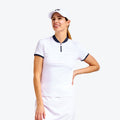 This short-sleeved golf top combines comfort and performance on the course. Its semi-fitted cut and laser-cut fabric on the front and back offer both elegance and breathability. The ribbed collar and cuffs, paired with a practical YKK zipper, add a modern touch. With UPF 40+ sun protection, quick-dry properties, and cooling effects, this top keeps you cool and dry even on the hottest days. The perfect choice for golfers.