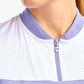 This short-sleeved golf top combines comfort and performance on the course. Its semi-fitted cut and laser-cut fabric on the front and back offer both elegance and breathability. The ribbed collar and cuffs, paired with a practical YKK zipper, add a modern touch. With UPF 40+ sun protection, quick-dry properties, and cooling effects, this top keeps you cool and dry even on the hottest days. The perfect choice for golfers.