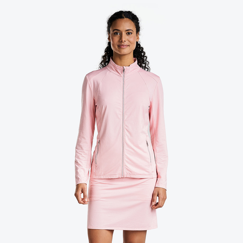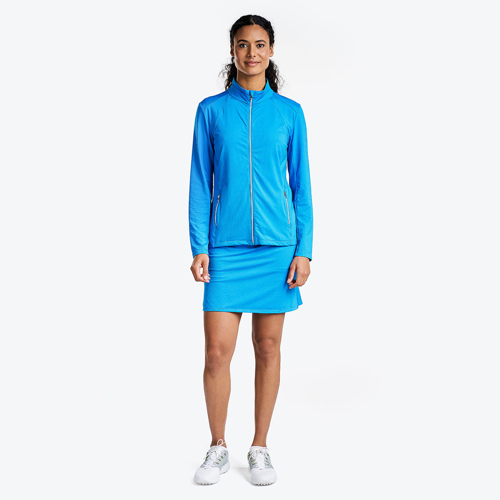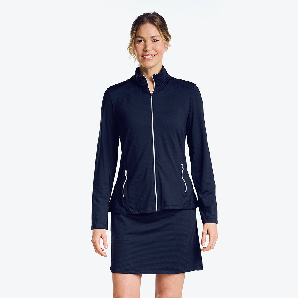 The Livia Cardigan is a versatile and comfortable cardigan that you can wear for your next golf round, other sports activities, or daily outings. This stylish piece is made with UPF 50+ fabric to protect you from the sun and features quick-dry and moisture-wicking properties to keep you cool and dry on the course. Plus, the antimicrobial properties of the fabric will keep you feeling fresh all day long. The YKK zipper open front provides a sporty look, while the zippered hand pockets are perfect for carrying small essentials. The reflective logo adds a touch of visibility in low-light conditions.