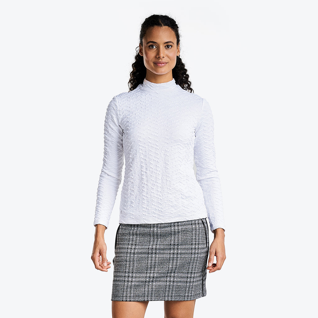 Introducing the Mady golf mock from NVO. This long sleeve golf top is lightweight and comfortable. It features UPF 30+ properties protecting you from UV rays.