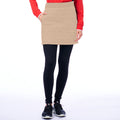 Are you looking for a versatile and sporty skirt that can keep up with your active lifestyle? Look no further than the Meggie skirt! This sporty skirt is made from breathable, stretchy fabric that wicks away moisture and dries quickly, making it perfect for everything from golfing to hiking. It also features an elastic waistband for a comfortable, secure fit and two front pockets for storing your essentials. The stretchy, breathable fabric is also great for hot days when you need to stay cool and comfortable. And with UV protection built-in, you can wear this skirt all summer long without worry. Plus, the Meggie skirt is available in black and taupe to match any outfit. So whether you're on the green or exploring the great outdoors, the Meggie skirt will become your new go-to.