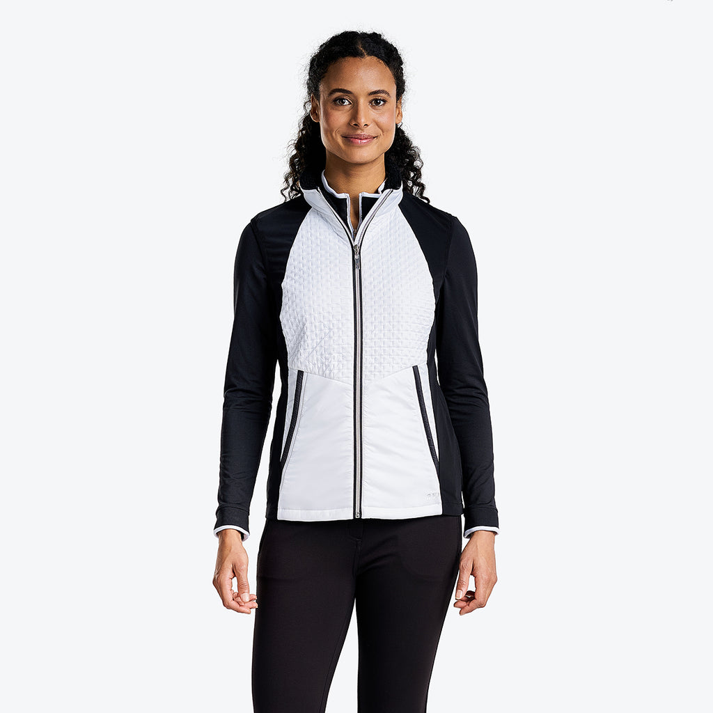 This Mikaela jacket from NVO is your perfect wardrobe companion on and off the golf course. Featuring UPF 40+, this golf jacket ensures you are safe from the sun's harmful rays. It is quick-dry and lightweight to keep you comfortable in any weather. You can wear it on any occasion, and it keeps you fresh as humidity evaporates quickly. Embossed 100% polyester provides an added layer of better coverage from outside elements. The front YKK zipper closure adds an athletic touch. Plus, two front pockets with zippers are great to store all your essentials safely.