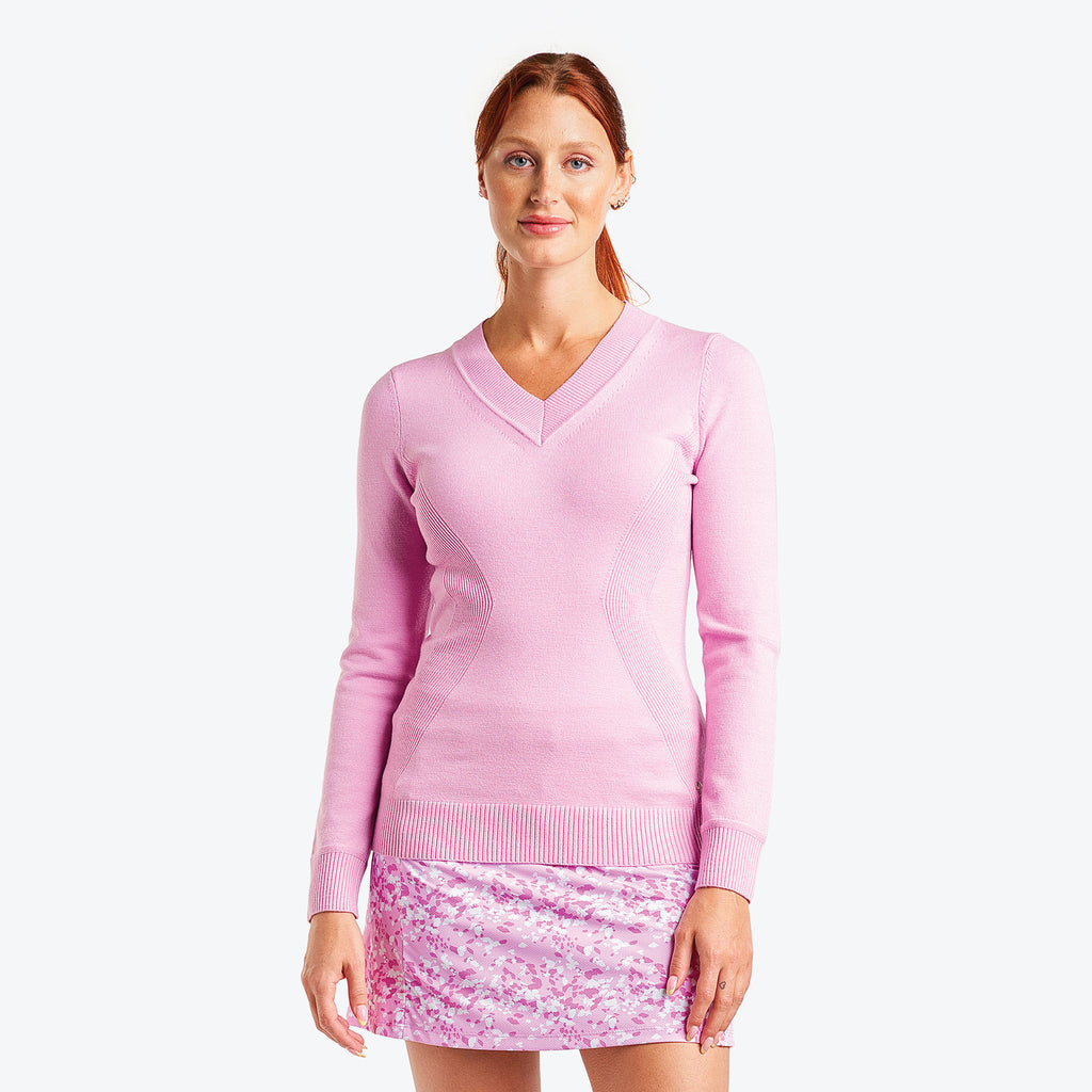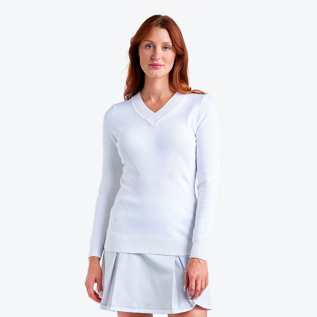 With its long sleeves and 30+ UV protection, the Nicole sweater from NVO protects you from the cold and the harmful rays. This comfortable sweater for women features a quick-drying fabric that wicks away moisture to keep you cool and fresh. Get absolute flexibility thanks to the 4-way stretch fabric and make each swing feel effortlessly fluid.