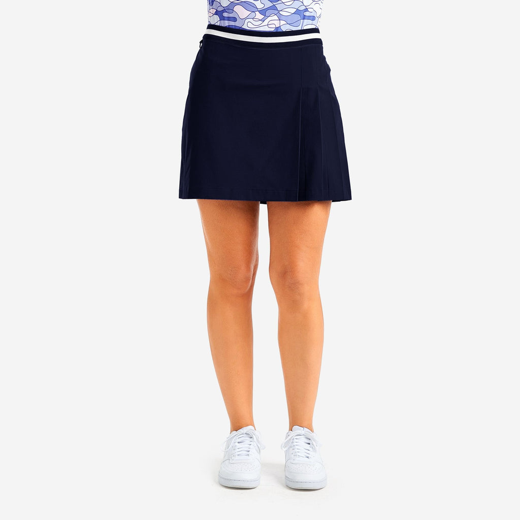 Imagine walking the links, your skort moving with you like a second skin protecting you from the sun's glare as you make that birdie. That's what the Valentina golf skort from NVO promises. This skort provides ample coverage while still allowing for freedom of movement through each course and activity. Thanks to its quick-drying and moisture-wicking properties, it ensures you stay fresh and cool from the first hole to the eighteenth. Its breathable feature promotes air circulation, keeping you comfortable during an intense round or while running errands post-game. Plus, the pleats provide extra movement for you to walk, swing, and perform your best, all whilst maintaining a chic appearance. Enjoy the comfort of shorts with the style of a skirt with Valentina!